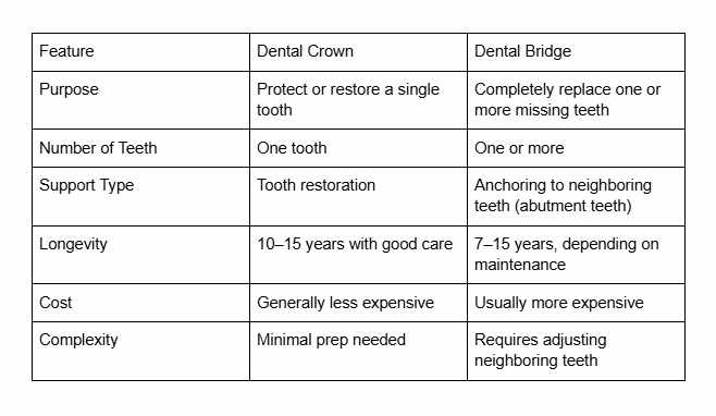 Key Differences: Crowns vs. Bridges